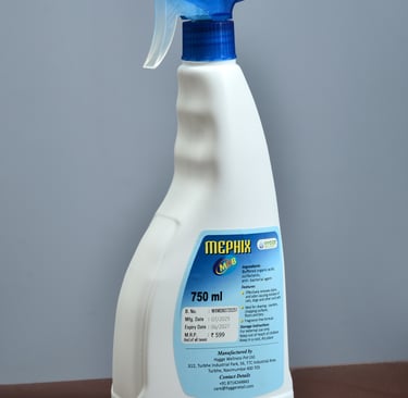 Mephix is a clear, transparent, water-soluble odour neutralizer engineered for rapid action in high-odour environments. The formulation targets and neutralizes malodours rather than merely masking them. It is ideal for routine sanitation schedules, animal care facilities, and waste-processing zones that require continuous freshness and hygienic conditions.